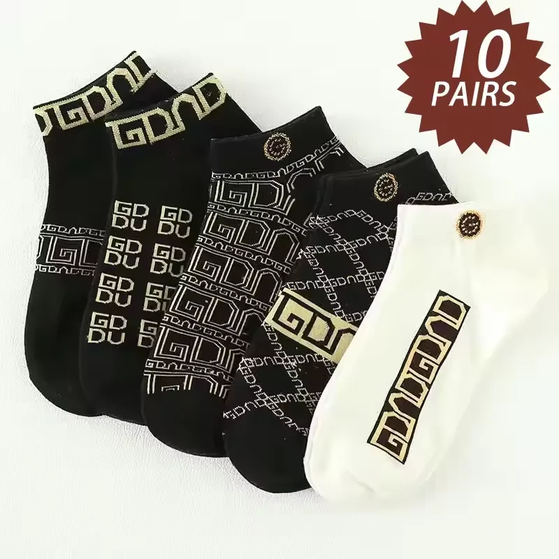 Men’s Breathable Low-Cut Socks – 5-Pack, Lightweight & Moisture-Wicking (Colorblock/Striped/Letter)